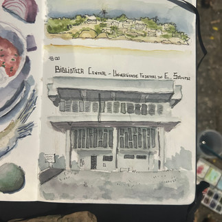 No Espírito Santo, Guilherme deu vida a diversos pontos emblemáticos com suas aquarelas. "Desenhei o casarão histórico onde estou hospedado, que é do século XXI, o Convento da Penha, que foi uma das atrações que mais gostei, e até a Moqueca Capixaba", conta. Outros registros incluem a vista da praia da Curva da Jurema, a biblioteca da Universidade Federal do Espírito Santo (UFES) e uma oficina de cianotipia no Sesc Glória, onde explorou técnicas fotográficas.
